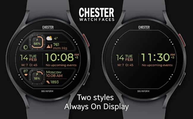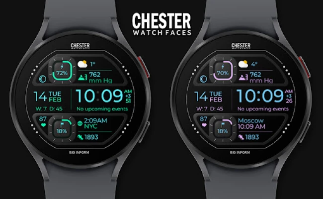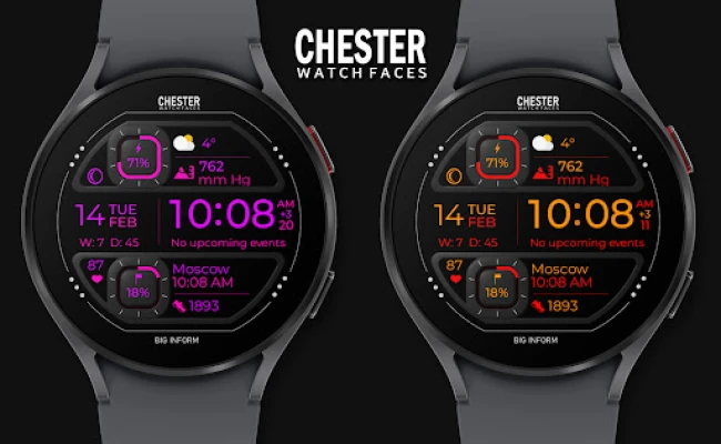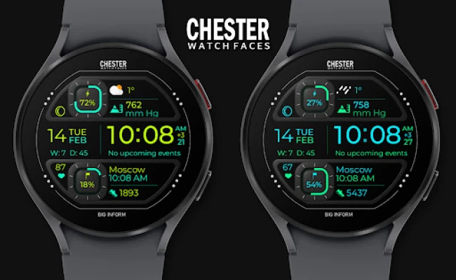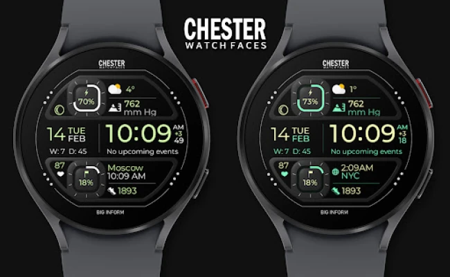 Temukan tampilan jam modern dan informatif untuk Wear OS dari CHESTER WATCH FACES. Tampilan jam bergaya ini menghadirkan banyak informasi penting langsung di pergelangan tangan Anda. Desain inovatif dan data yang kaya berpadu sempurna untuk pengalaman pengguna yang unggul.