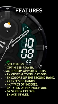 Lebih dari sekadar penunjuk waktu, tampilan jam ini juga menghadirkan keindahan fase bulan dan tiga gaya Always-On Display (AOD) yang memukau, memastikan jam tangan Anda tetap elegan bahkan saat layar tidak aktif penuh. Dibuat dengan presisi, tampilan jam ini kompatibel secara sempurna dengan perangkat Wear OS API 30+ terbaru, termasuk Google Pixel Watch, Samsung Galaxy Watch 6, Galaxy Watch 5, dan banyak perangkat unggulan lainnya. Persembahan dari ChesterWF ini siap memperkaya pengalaman jam tangan pintar Anda. Harap dicatat, desain ini tidak direkomendasikan untuk perangkat jam tangan berbentuk persegi panjang.