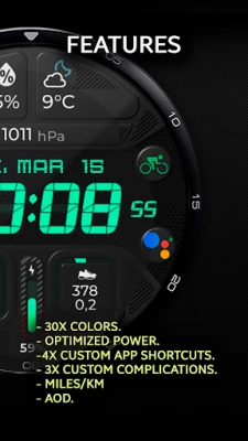 Tampilan jam tangan inovatif untuk Wear OS. Sesuaikan layar jam Anda dengan beragam pilihan personalisasi mendalam. Atur informasi yang ditampilkan agar sesuai preferensi dan kebutuhan harian Anda, memastikan pengalaman jam tangan yang benar-benar unik dan fungsional.