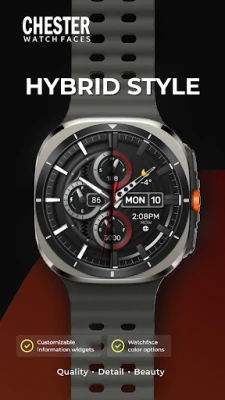 "Chester Hybrid – Classic & Sport Watch Face" adalah tampilan jam tangan serbaguna untuk Wear OS. Nikmati perpaduan desain klasik dan sporty yang elegan dalam satu antarmuka. Sesuaikan tampilan jam Anda untuk setiap momen, baik formal maupun kasual, dengan gaya yang tak terbatas.