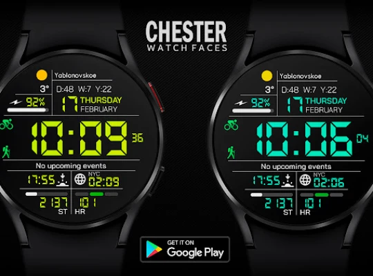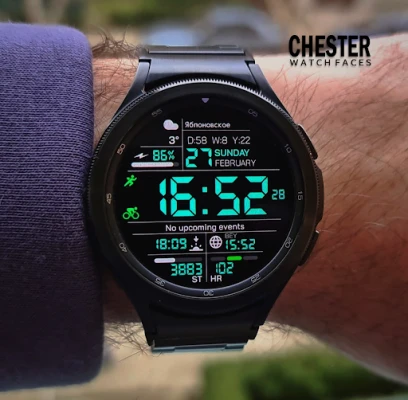 Tampilan jam Chester inform LCD yang stylish! Dapatkan informasi penting seperti detak jantung, langkah harian, dan tanggal. Sesuaikan dengan 30 warna, 2 gaya AOD, dan akses cepat aplikasi favorit Anda. Nikmati fitur multilingual dan desain modern.