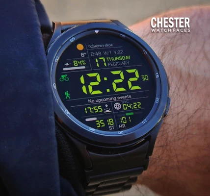 Hadirkan esensi kecanggihan dan fungsionalitas langsung ke pergelangan tangan Anda dengan sebuah tampilan jam tangan yang dirancang untuk memperkaya pengalaman smartwatch Anda. Lebih dari sekadar penunjuk waktu, kreasi ini memadukan informasi vital dengan desain elegan, memastikan Anda selalu selangkah lebih maju dengan gaya dan efisiensi yang optimal setiap hari.