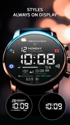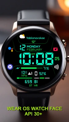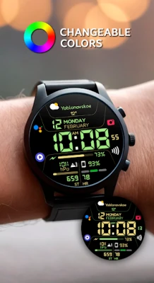 Tampilan jam Chester Inform MOD LCD yang bergaya untuk Wear OS. Nikmati akses cepat aplikasi, zona informasi khusus, 30 pilihan warna cerah, dan tiga mode AOD. Antarmuka multibahasa membuat jam tangan Anda semakin personal dan fungsional.