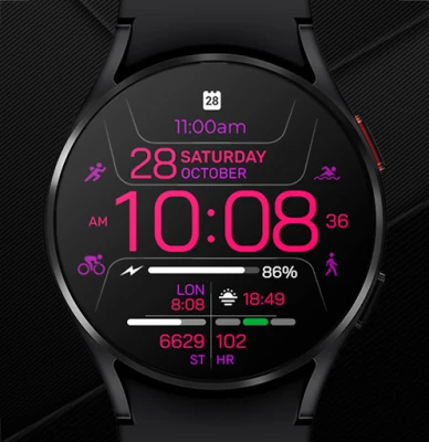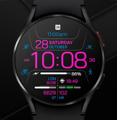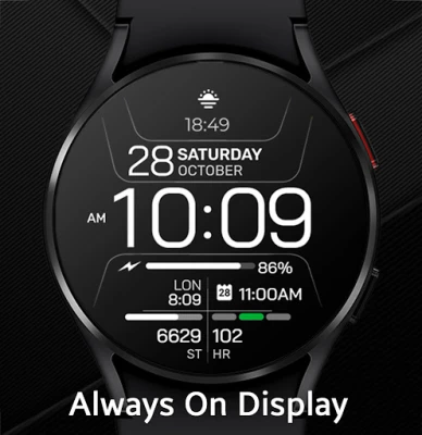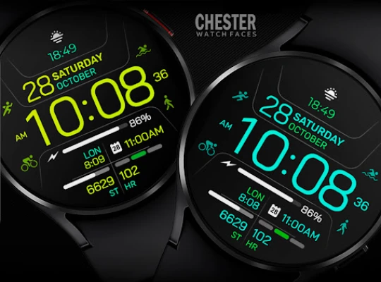 Dapatkan tampilan jam Chester Inform MOD yang stylish untuk smartwatch Anda. Nikmati fitur tanggal, hari, empat zona akses cepat aplikasi, empat zona info, 25 pilihan warna, tiga mode AOD, dan dukungan multibahasa. Sesuaikan gaya fungsional Anda.